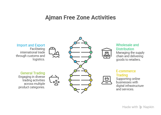 A trade license in Ajman Free Zone is designed for businesses dealing in physical or digital goods, rather than pure services. Typical activities include: