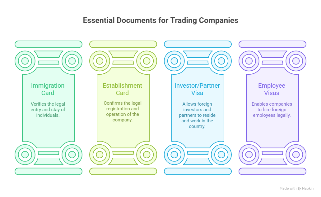 Foreign investors can own 100% of a general trading company in most cases after the UAE changed its company ownership laws in 2021. Standard documentation includes: